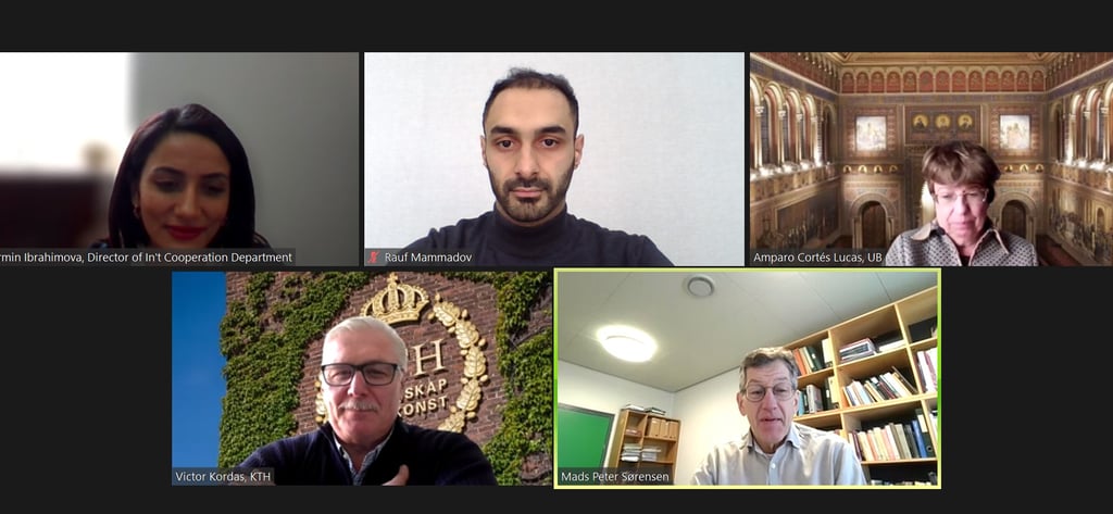 In the framework of the REFRESH project, a dissemination meeting with international partners took place, bringing together representatives from Azerbaijan State University of Economics (UNEC), Barcelona University, KTH Royal Institute of Technology, Bologna University, and the Technical University of Denmark. The meeting focused on advancing dissemination activities within the project, discussing plans for inviting foreign partners as speakers at the upcoming local conference scheduled for May 22-23.